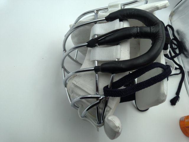 自衛隊徒手格闘術試合用格闘術面等は顎への紐の下を潜らす事で面垂れ紐通しが無くても使える。 |