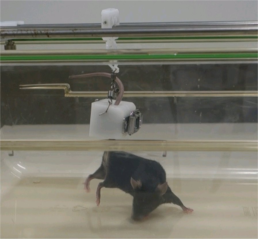 マウス尾懸垂専用の軽量小型滑り軸ローラを新たに開発した MSR2014型 マウスがストレス無く自由に移動可能 |