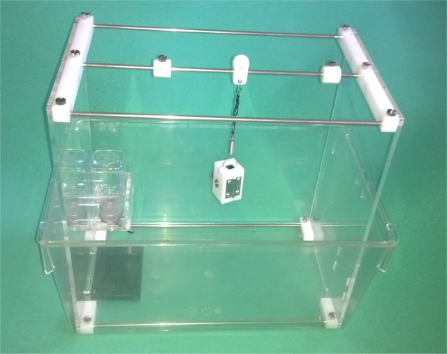 | 尾懸垂クリップの開発により尾懸垂試験は簡単で安定した測定になった。 市販ラットケージを2個使用した簡易方式滑動式架台を新たに開発した。 標準的なラット飼育ケージは殆どの研究機関で所有し活用出来ます。 ラット尾懸垂滑車と組み合わせてラットのストレスを軽減。 給水瓶と餌箱取り付け可能、上部から給水と給餌交換可能 ストレスの少ない滑動式尾懸垂飼育装置が簡単に構築出来ます。 2015年7月16日 |