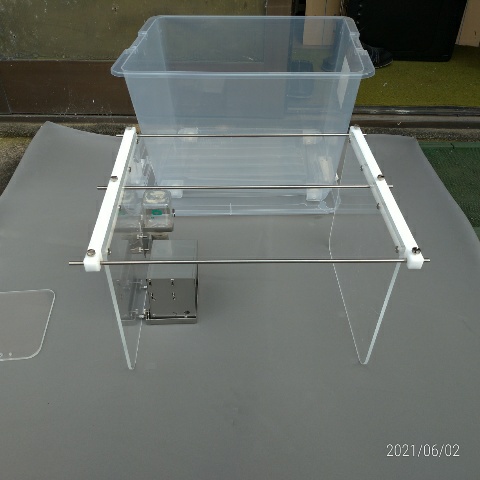 | ケージとして市販収納容器(半透明・低価格)を活用したラット尾懸垂試験装置。 ラット尾懸垂滑車と組み合わせてラットのストレスを軽減。 給水瓶と計量餌箱取り付け可能、上部から給水と給餌交換可能 計量餌箱はオートクレーブ可能 異物混入防止構造で高精度の食餌量計量が可能。 収納容器はポリプロピレン製、オートクレーブ不可。 ストレスの少ない滑動式尾懸垂飼育装置が簡単に構築出来ます。 2021年6月3日 |